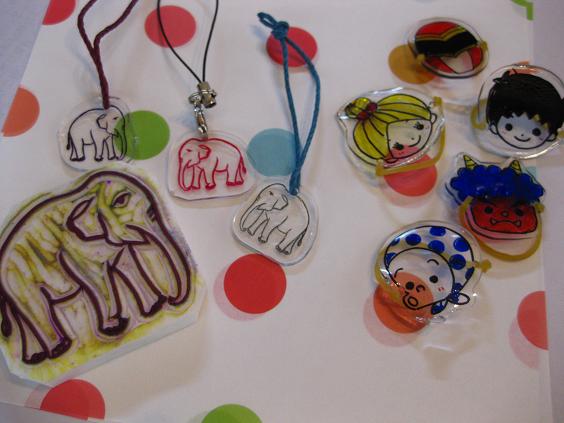 そして、楽しいあまりに試したくなって、いつものゾウさんはんこをステイズオンでプラ板に捺して、オーブントースターへ。