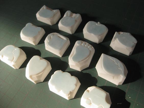 スクールのお祭りは初めてだし、みんなどんなものを出すのか全然わからないし、お値段的にもどの程度に設定したらいいものか…と悩みながらも、ぜひ消しゴムはんこのお店は出したいなーっと。