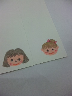 カワイイマトリョーシカのはんこを作り、おなかにはワンポイントのリボンやハートを作ってポン。