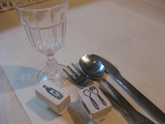 カトラリーとワインボトル
